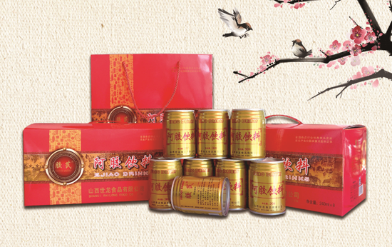 “膠芪”牌阿膠飲料,以新品阿膠為主原料,配之以先進的生產流水線加工制作,產品湯汁金黃,入口綿軟醇香,甜淡適宜,實為新一代阿膠飲料。
